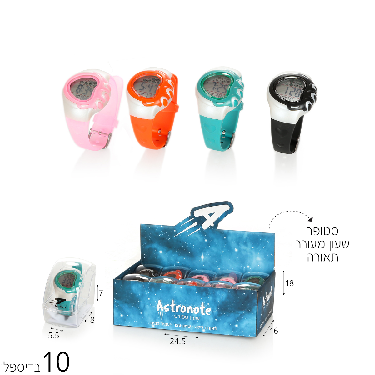 שעון יד צבעוני מעוגל עמיד במים(10 יח')