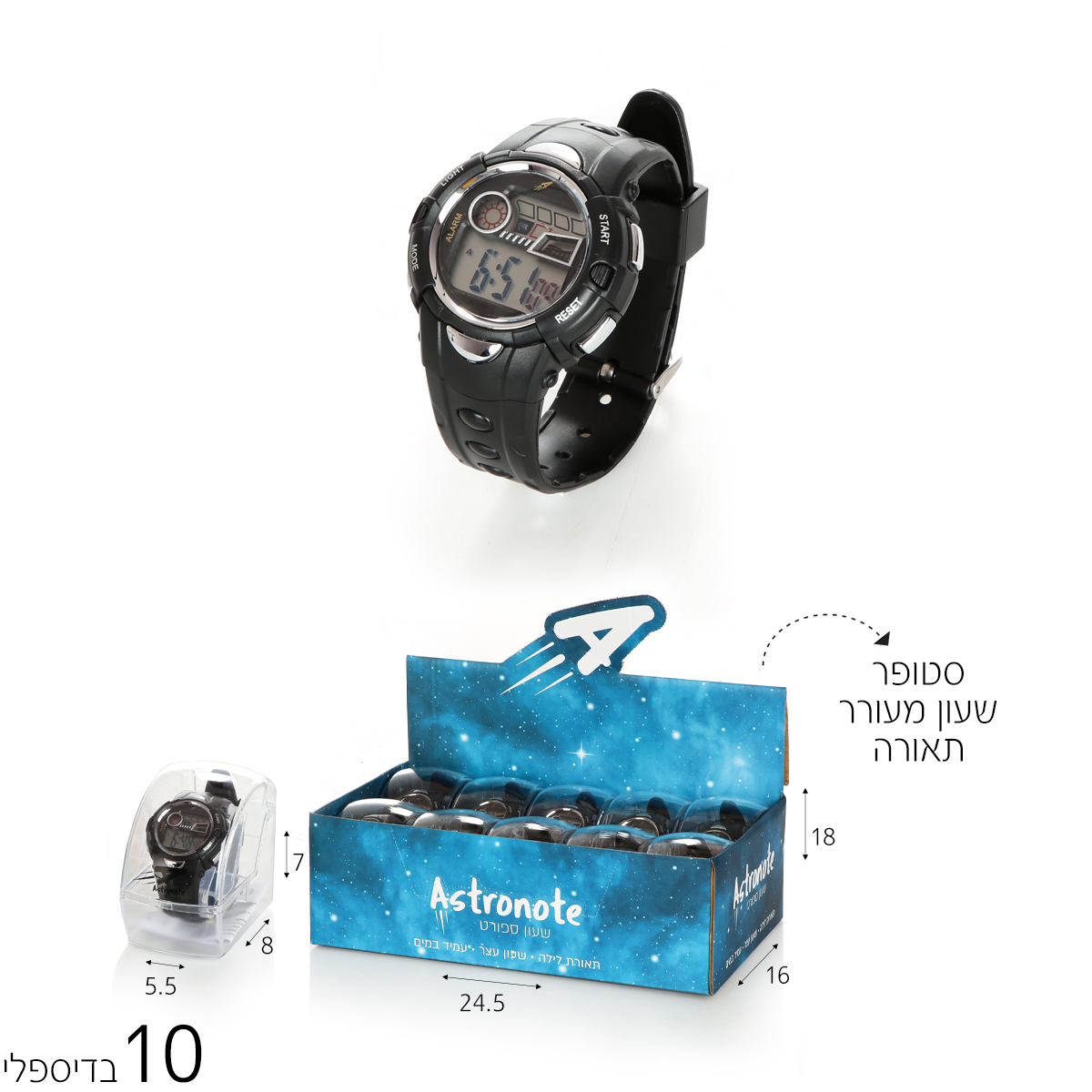 שעון יד שחור אתגרי עמיד במים(10 יח')